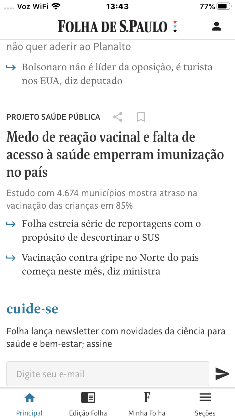 Na edição virtual deste sábado, 11, ela anuncia um certo “Projeto Saúde Pública” e promete mostrar o que é o SUS Sistema Único de Saúde. E o título da matéria começa com “Medo de reação vacinal”.